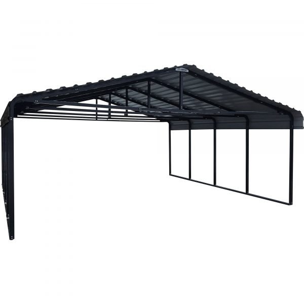 The Arrow Steel Carport is built strong, wind rated to 100 MPH and snow load rated to 35 PSF, and backed by a 10-year limited warranty. This galvanized steel carport features a powder-coated steel frame for corrosion and rust resistance. The tough made galvanized steel roof is made strong. Perfect for use as a carport, shelter, shade and storage for boats, vehicles, tractors and even as an outdoor picnic area.