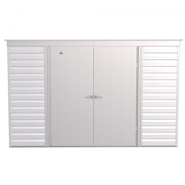 Arrow Select Steel Shed SCP104FG 10x4ft Galvanized Steel (Flute Grey) is a narrow, extended storage solution perfect for maximizing utility in side yards or tight spaces. This 10x4ft shed is ideal for securing long equipment, lumber, or functioning as a durable enclosure for garbage and recycling bins. Constructed from galvanized steel, it ensures long-term resistance to rust and weather. The Flute Grey finish provides a clean, modern look. This unit maximizes storage efficiency in minimal footprints, offering robust, weather-resistant protection.