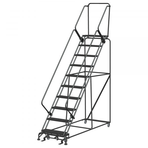 For maximum platform security and anti-slip performance, choose the Ballymore SW1032G Rolling Ladder. This 10-step unit, reaching 133 inches, features a robust safety gate (SW) and exceptional Grip Strut (G) treads. The heavy-duty steel construction guarantees resilience, while the aggressive tread pattern ensures stability, even on slick surfaces. The Ballymore SW1032G is the professional-grade solution for high-frequency access tasks where safety and reliable grip are non-negotiable.