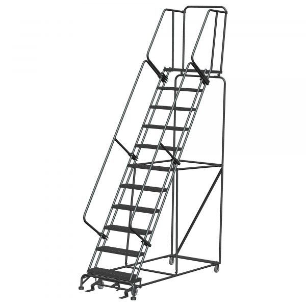 Gain secure and efficient high-level access with the Ballymore 113221P Industrial Rolling Ladder. This 11-step mobile unit reaches a working height of approximately 143 inches. The Perforated (P) treads provide solid traction and excellent drainage. Robust steel construction ensures long service life, while the automatic locking system guarantees immediate, stable positioning when in use. The Ballymore 113221P is a necessary and dependable asset for tall warehouse and facility operations.