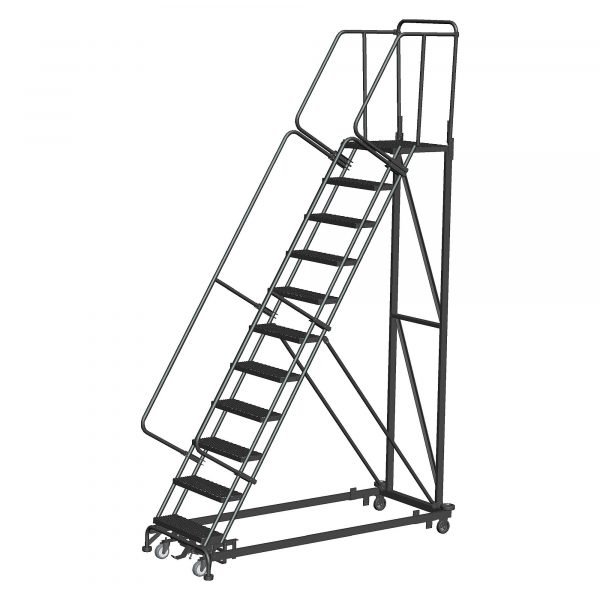 Enhance high-level work efficiency and safety with the Ballymore ML113221P Heavy Duty Rolling Ladder. This 11-step mobile unit provides stable access up to approximately 140 inches. The heavy-duty steel construction and Perforated (P) treads ensure stability, reliable traction, and good drainage. The automatic locking mechanism guarantees the ladder is stationary when in use. The Ballymore ML113221P is a valuable asset for high vertical operations.