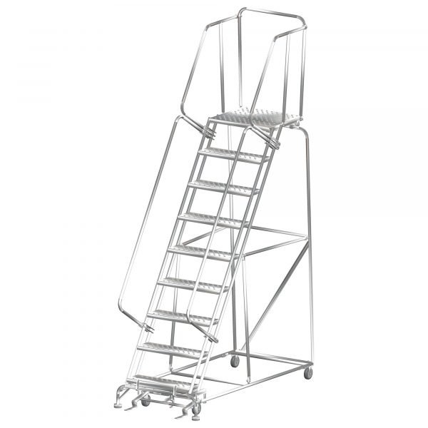 Ballymore SS093221G Stainless Steel Rolling Ladder 9 Steps 123-inch Height Grip Strut Treads