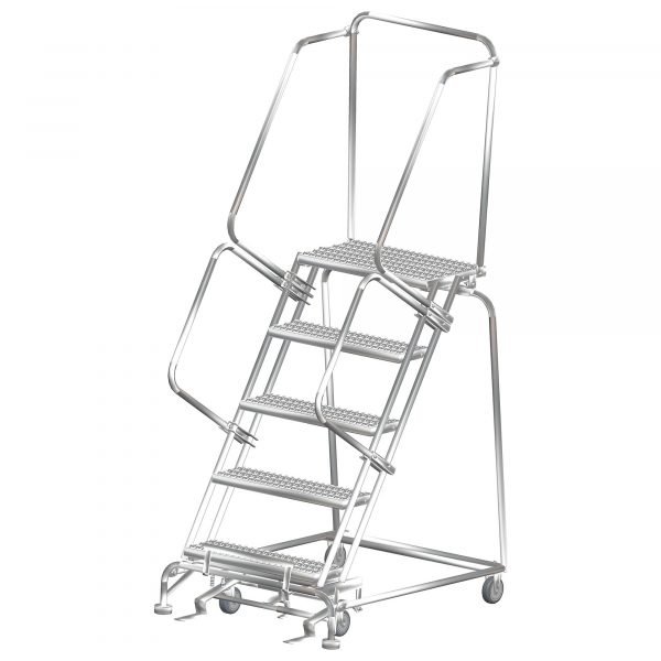 Ballymore SS052428P Stainless Steel Rolling Ladder 5 Steps 83-inch Height Perforated Treads