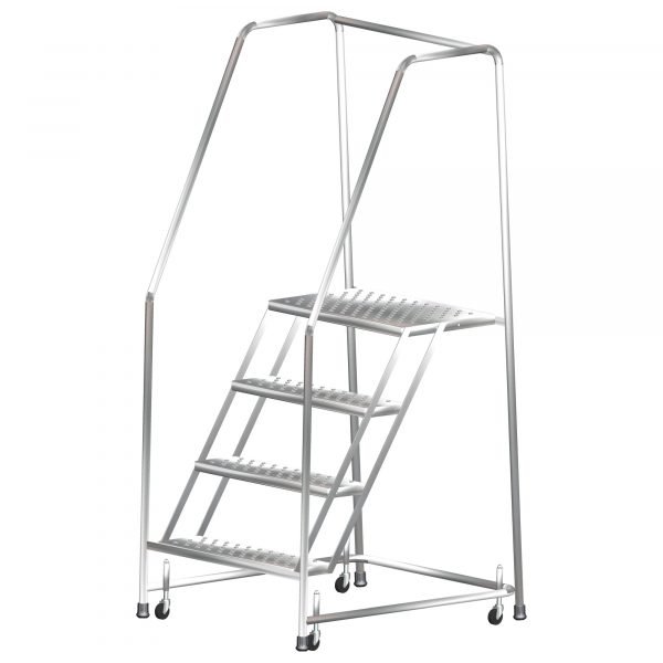 Ballymore SS420P Stainless Steel Rolling Ladder 4 Steps 73-inch Height Perforated Treads