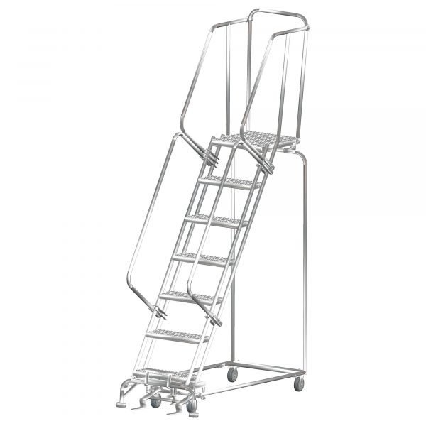 Ballymore SS072414P Stainless Steel Rolling Ladder 7 Steps 103-inch Height Perforated Treads