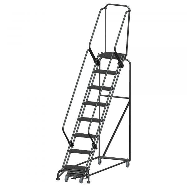 The Ballymore WA-SW82414P Narrow Aisle Rolling Ladder combines space-saving design with crucial safety features. This 8-step unit, reaching 113 inches, includes a safety gate (SW) and Perforated (P) treads for secure footing and drainage. Its narrow profile allows for use in congested areas, while the heavy-duty construction ensures stability. The Ballymore WA-SW82414P is an essential tool for safe and efficient operations in tight vertical spaces.