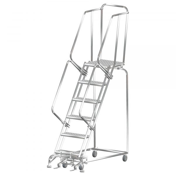 Ballymore SS062414P Stainless Steel Rolling Ladder 6 Steps 93-inch Height Perforated Treads