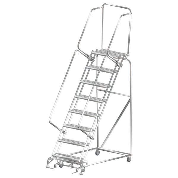 Ballymore SS082428P Stainless Steel Rolling Ladder 8 Steps 113-inch Height Perforated Treads
