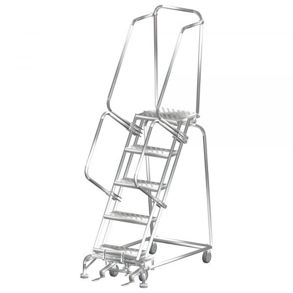 Ballymore SS052414G Stainless Steel Rolling Ladder 5 Steps 83-inch Height Grip Strut Treads