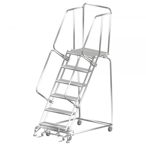 Ballymore SS063214P Stainless Steel Rolling Ladder 6 Steps 93-inch Height Perforated Treads