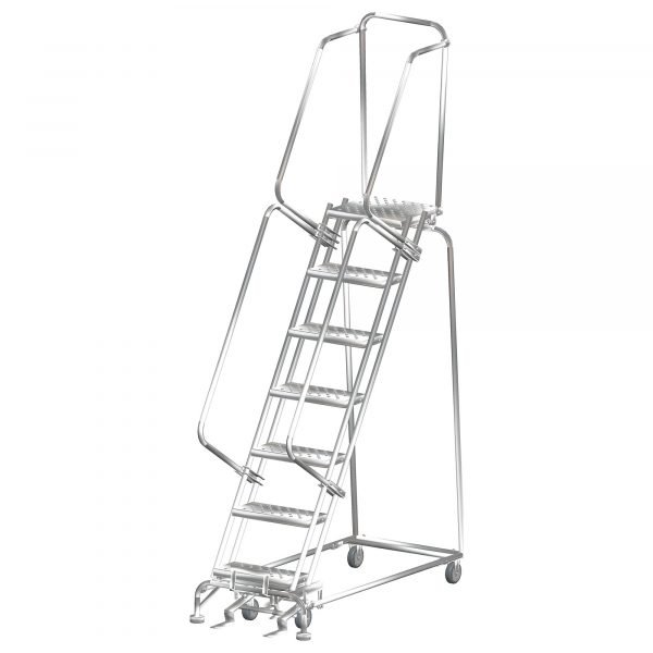 Ballymore SS072414G Stainless Steel Rolling Ladder 7 Steps 103-inch Height Grip Strut Treads