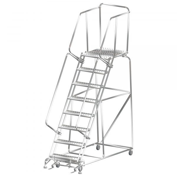 Ballymore SS083221P Stainless Steel Rolling Ladder 8 Steps 113-inch Height Perforated Treads