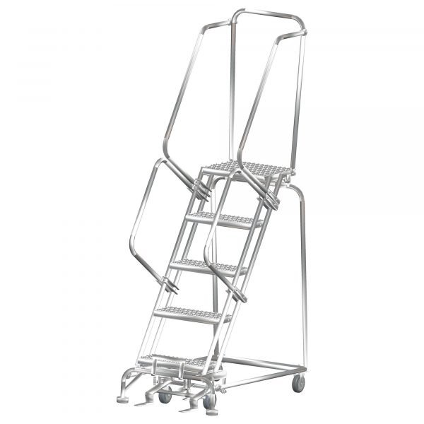 Ballymore SSTR430P Stainless Steel Rolling Ladder 4 Steps 73-inch Height Perforated Treads