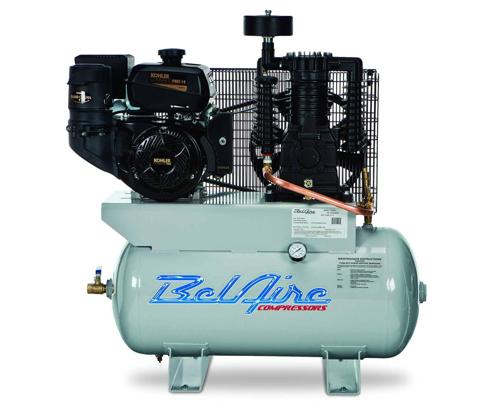 BelAire 3G3HKL Air Compressor: 14-HP Kohler-Powered Horizontal Service Truck Series