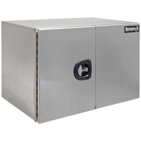 Contractors, utility workers and maintenance professionals can rely on the Buyers Products XD Smooth Aluminum Underbody Truck Tool Box to help keep tools secure and easy to access. The XD Smooth Aluminum Underbody Truck Box with Barn Door is built to protect your equipment during heavy duty use. The rigid extruded box frame and .125in. thick smooth aluminum is great looking and provides reliable protection. A built-in rain gutter and automotive bulb seal work with the 3-point locking, die cast compression latch system to help shut out theft, moisture, and grime. For added convenience, you can mount the barn door with the latch on either the left or right door. The stainless steel piano hinge is corrosion resistant, and the 1/4in. pin makes it easy to adjust or replace the doors.