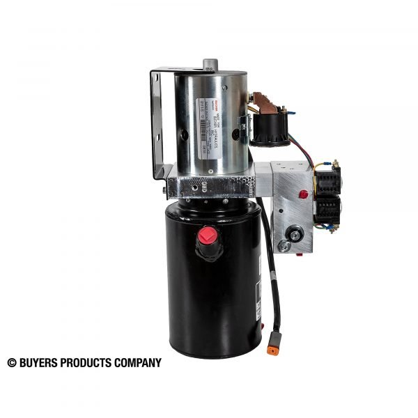 The 4 Way/3 Way DC Power Unit – Electric Controls from Buyers Products is an all-in-one, compact power pack. This horizontal-mount power unit is ideal for powering snow plow lift and angle operations. It includes pre-wired rocker switch controls that provide 4-way/3-position fingertip control for Power Up/Hold/Gravity Down (plow hoist), and 4-way for exact left-right angling of the blade. A crossover relief valve protects the angle cylinder and the plow blade should the plow strike a hidden object.