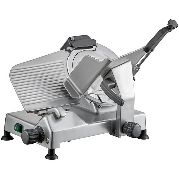 The Centerline Hobart EDGE10 features a 10-inch chrome-plated carbon steel knife and a 1/3 HP motor designed to manage mechanical fatigue during peak lunch rushes. The Poly-V belt drive provides a larger surface area for power transfer, calculating to an actual labor efficiency gain by reducing belt slippage on dense proteins. This means your staff encounters zero motor bog-down, protecting your profit margins through consistent throughput and reduced maintenance costs. The unit ensures high sanitation efficiency with its one-piece anodized aluminum base and tool-free disassembly. The top-mounted Borazon stone sharpener maintains a razor edge in seconds, outperforming standard stone systems.