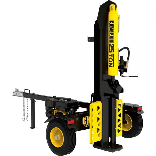 This towable Champion 25-Ton Horizontal/Vertical Log Splitter with a 224cc engine easily powers through the toughest logs. Fast 11-second cycle time and auto-return valve reduce work time, while handy log catchers and easy adjustment from horizontal to vertical operation help save your back. Some assembly required.