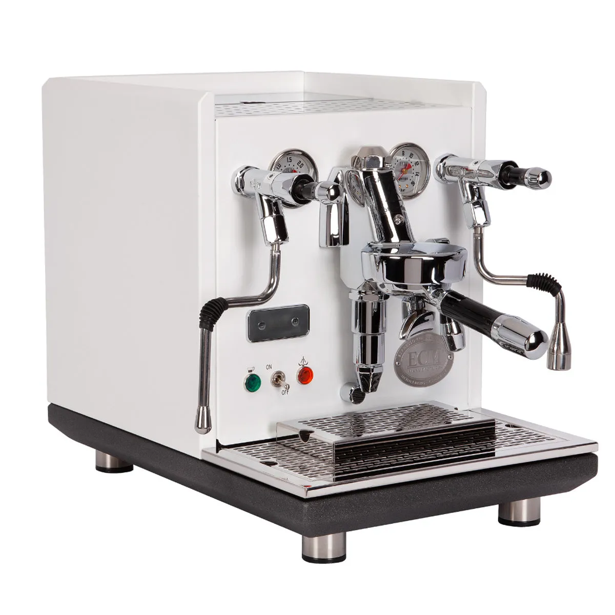 • E61 Heritage Design: Patented ECM group head with unique satin/white aesthetic.