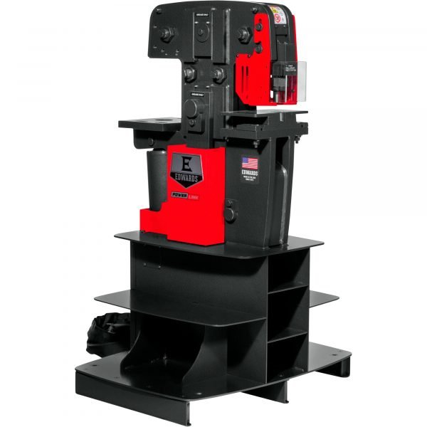 The Edwards 25-Ton Dual Station Ironworker features 2 available workstations with 9 interchangeable attachments available to tailor the Ironworker to your needs. In addition, 7 optional accessories are available (sold separately) to increase precision and efficiency. Requires an Edwards Ironworker with PowerLink System or a Portable Power Unit to operate. ANSI B11.5-1988(02) compliant guarding.
