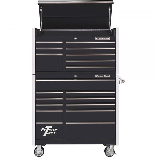Extreme Tools RX412508CHBK is an RX Series 41in 8-Drawer Top Tool Chest. This Black 25in deep chest provides high-capacity, professional-grade tool organization for heavy-duty shops.