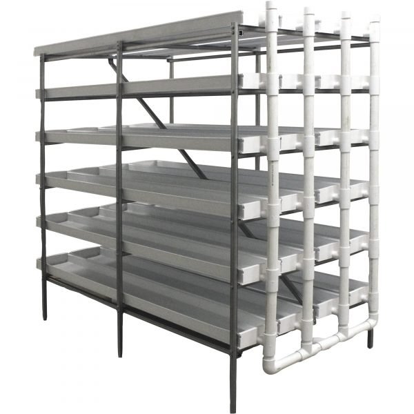 The Fodder King 6–24 Hydroponic System is an economical tray system designed to quickly grow your own pesticide-free feedstock with minimal water. System includes a pump and timer to operate at desired increments. Can be operated as a recirculating system, or drain-to-waste. Complete system includes: 24 PVC channels, 400 GPH pump and filter, 5-gal. bucket and strainer, poly punch, plumbing, and PVC primer, cement and cleaner (reservoir not included).