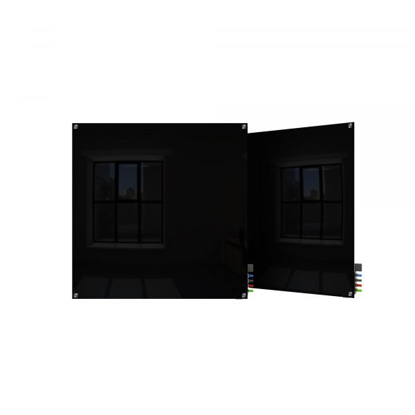 Ghent HMYSM44BK 4ft x 4ft Magnetic Glass Whiteboard Black Square Corners