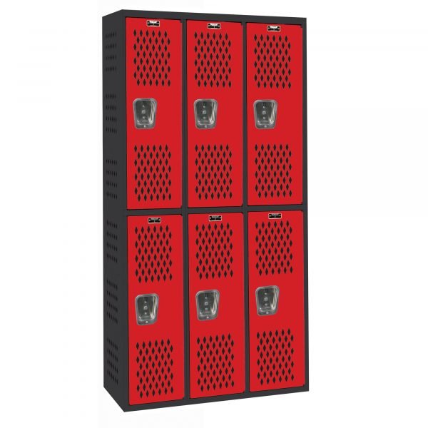 Hallowell AWA282-222MR PE/Gym Locker is a 72in H double-tier starter unit. This Black unit features a heavy-duty mesh design for maximum ventilation, making it ideal for high-school athletic rooms.