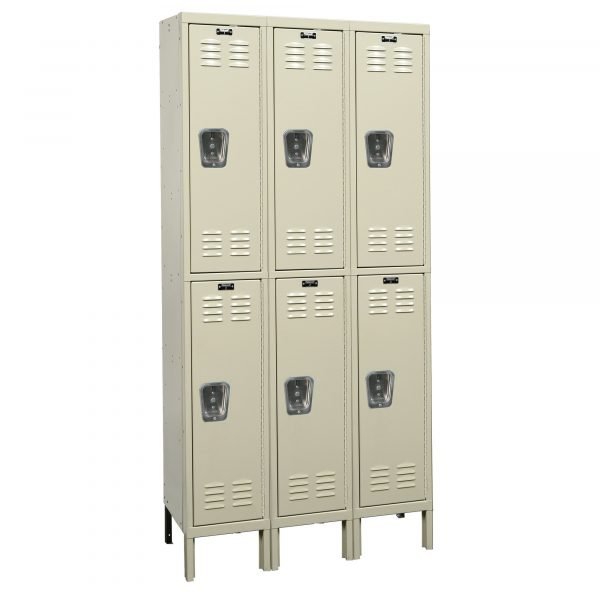 Hallowell U3288-2PT Premium Steel Locker is a 78in H double-tier starter unit. This 36in wide Tan locker provides six secure user compartments for schools, gyms, and offices.