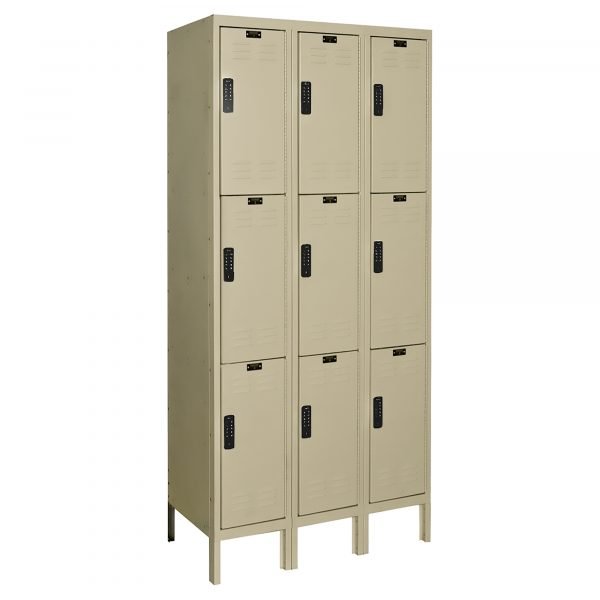 Electronic digital locks allow for shared use by remaining unlocked until a random user locks the door by simply entering a 4-digit user PIN. Upon returning to the locker, the user re-enters their 4-digit user PIN to open the locker—the PIN is then scrambled and the locker is ready for the next user. The lock allows for a Manager’s master PIN as well as a Sub-Manager’s sub-master PIN. Locks can be re-programmed by the Manager for permanent use. User can change their PIN at any time when lock is in Permanent User Mode. Lock doubles as door handle. Doors and frame are constructed of heavy-gauge steel and include a continuous piano hinge to insure a worry-free door operation. Wardrobe lockers allow for larger personal storage while box lockers are perfect for storing of smaller personal items. Electronic digital lock is included. Order 3-wide units for best value and order 1-wide units where needed to complete your layout. Lockers are available to ship fully-assembled or knock-down. Color is Parchment.