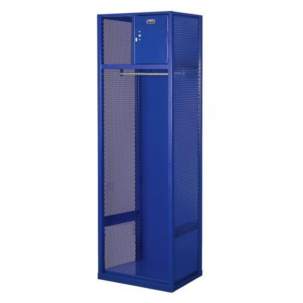 The perfect gear locker! Our Welded Open-Front Sport Lockers are perfect for high school and collegiate sports organizations as well as for open gear storage in factory, military and law enforcement facilities. Lockers are fabricated of heavy gauge steel. Choose from four options and two colors to meet your specific needs: upper shelf only, upper shelf with security box, upper shelf with foot locker or upper shelf with security box and foot locker. All are available in Grand Slam Blue and Relay Red. All rookie lockers include 2 single hooks and a coat rod. Locks are not included. Sides are diamond perforated for added airflow. 1-wide units.