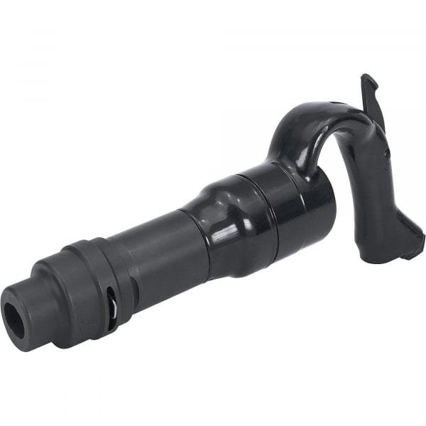 Extended valve life and a strong, forged-steel handle make this chipping hammer one of the most widely used in the industry. Ideal for light demolition, bridge decking, concrete surface prep, metal removal and many other applications. Round shank oval collar. Strong forged-steel throttle handle for durability and plated piston for reduced wear and extended life. Round nozzle.