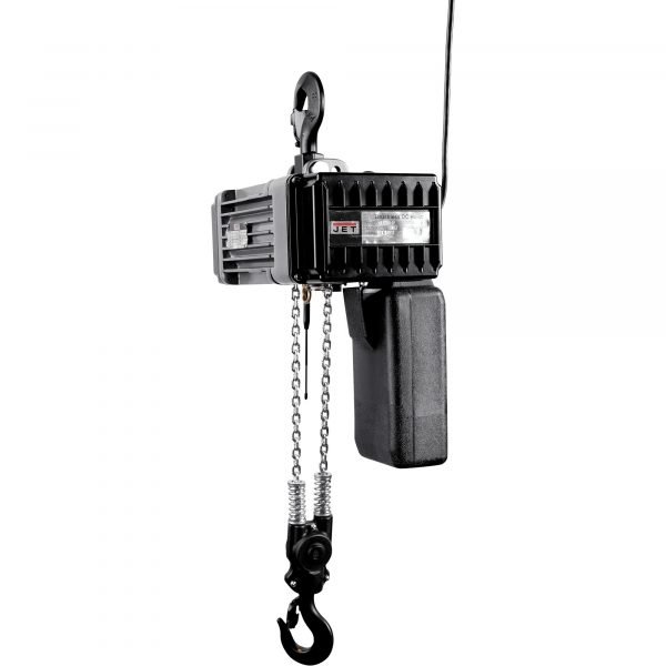 The JET Trademaster Series Electric Chain Hoist combines safety, portability and durability to operate in all your industrial, construction and transportation applications. With its market leading wireless controller and 2-in-1 mechanical brake and overload slip clutch, safety is most important. With a DC brushless motor, 5-pocket chain sheave and thermal overload protection, you have the durability you need to reduce maintenance costs. The lightweight, compact housing will get you into those tight areas. The molded carrying case allows easy transport from job to job.
