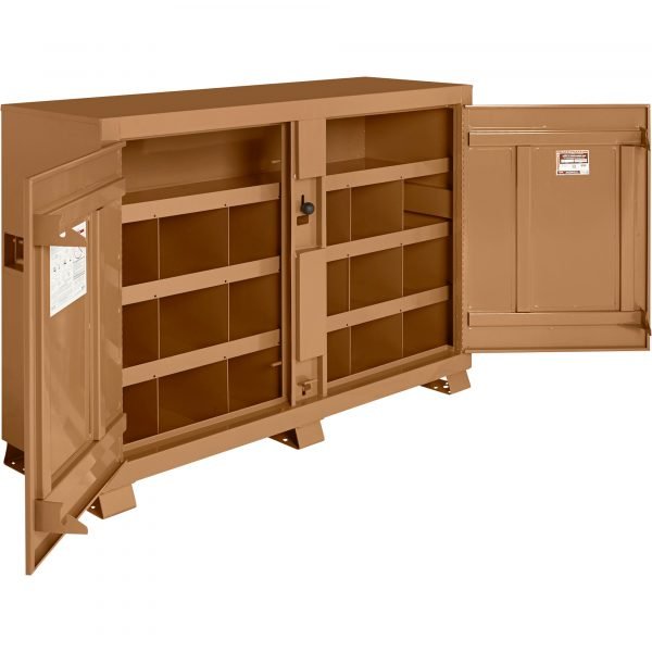 KNAACK 129 Jobsite Storage Cabinet is a high-security storage unit. This 48 Cu. Ft. cabinet ensures gear protection.