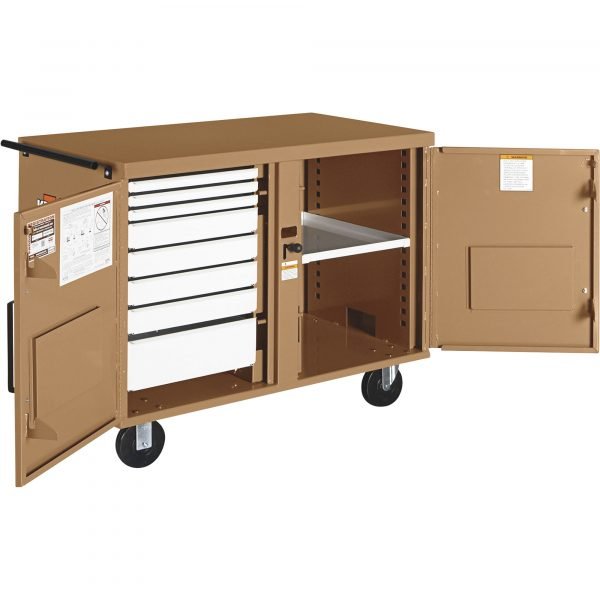 KNAACK 49 Storagemaster Rolling Workbench is a heavy-duty jobsite unit. This 25 Cu. Ft. bench ensures mobile utility.