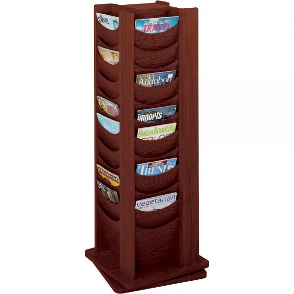 This Safco 48-Pocket Wood Rotating Display features 48 scoop front pockets for easy visibility and selection. Rotates 360° degrees.