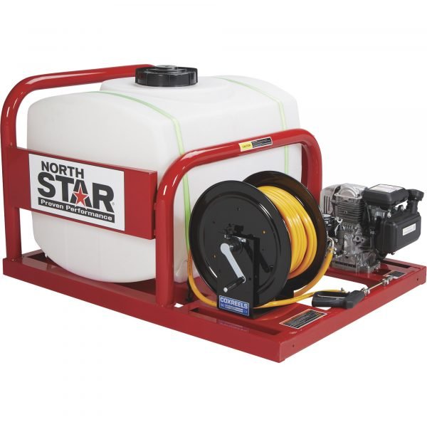 NorthStar Skid Sprayer is designed for applying pesticides and other chemical sprays. Tough direct drive pump is powered by a trusty Honda GC190 OHV engine to deliver up to 5 gallons per minute. NorthStar’s tank features extra-thick walls won’t bulge or sag. It stands up to chemicals because thanks to a special polymer known for its superior chemical resistance. Tank is UV-stabilized to prevent fading and other sun damage. 150ft. hose with gun lets user deliver the chemicals for the most effective pest control, even in hard-to-reach areas. Includes a manual rewind hose reel.