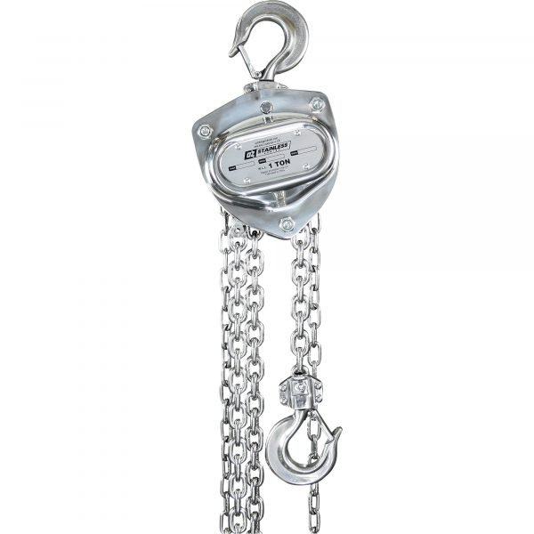 The OZ Lifting OZSS010-10CH 1-Ton Stainless Steel Manual Chain Hoist (10 ft Lift) offers robust, corrosion-resistant manual lifting for challenging industrial environments where low headroom is a concern. Built entirely from stainless steel, this hoist ensures maximum durability and clean operation. The OZ Lifting OZSS010-10CH is an indispensable, durable solution for maximizing safety and efficiency in demanding overhead tasks.