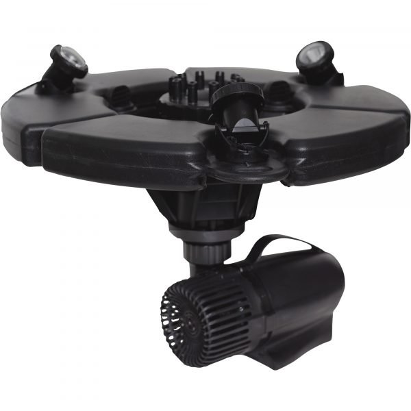 The Pond Boss Floating Fountain with LED Lights helps oxygenate pond water, while adding an elegant nighttime lighting effect. 1/2 HP pump motor delivers 5,000 GPH. Designed for use in a 1/2 acre pond. 2 1/2ft. minimum water depth required.
