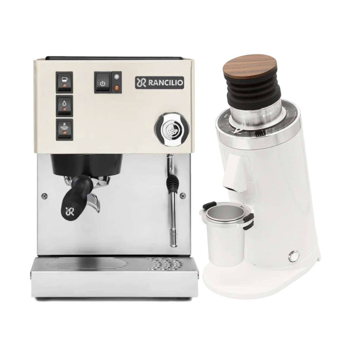 Rancilio Silvia M V6 Espresso Machine (White) and DF64 Gen 2 Grinder w/ DLC Burrs (White)