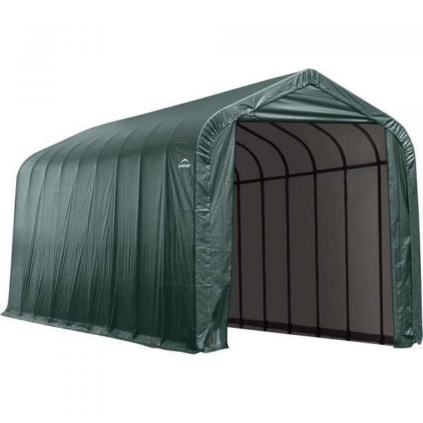 Peak-style shelter delivers 4-season protection for cars trucks, boats and more. Patented ShelterLock stabilizers add strength and stability. Heavy-duty portable shelter is a low cost solution, compared to more permanent storage options.