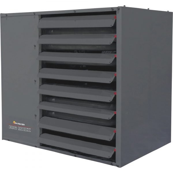 This Mr. Heater Big Maxx Natural Gas High-Output Commercial Unit Heater is quiet and vented for easily heating a large 6700 sq. ft. building. The low-profile design requires only 1in. clearance from the ceiling and delivers 200,000 BTU output. Includes LP conversion kit for easy change over. Easily installs using 3/8-16 threaded rods (sold separately). CSA certified. Works with Thermostat Item# 173641 (sold separately).
