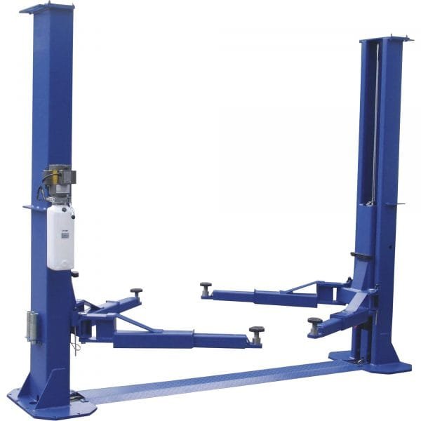 This 12,000-lb. capacity Tuxedo 2-Post Floor Plate Electric/Hydraulic Vehicle Lift offers heavy-duty performance at an economical price. The solid floor plate configuration and strong, dependable chain drive system offers years of reliable service. Excellent for use with a wide variety of vehicles up to 12,000 lbs. Item too large for lift gate. Requires forklift on site for unloading. This item is delivered by LTL enclosed van carriers Monday—Friday. A forklift is required to offload the lift from a dock-height trailer.