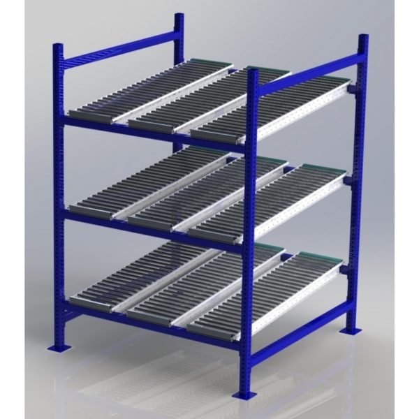 - 48×48″ roller rack starter kit with 3 gravity flow tiers.