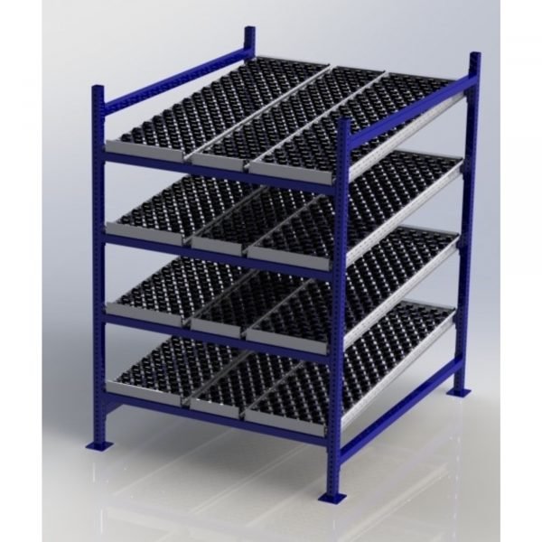 • 48×60″ skatewheel rack starter kit with 4 flow tiers.