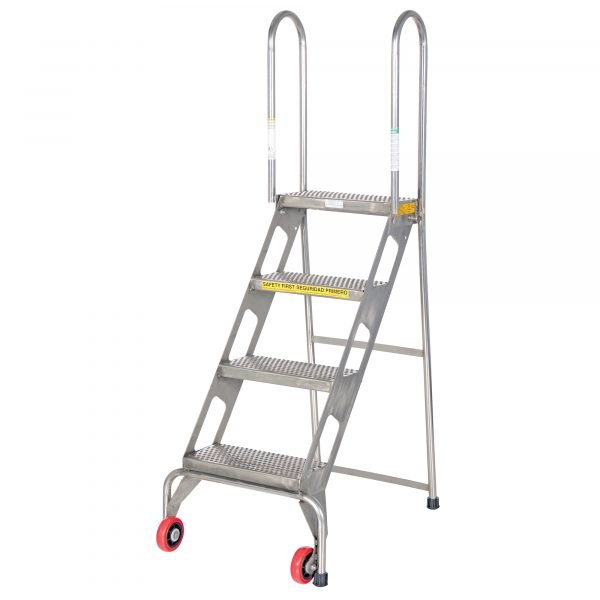 Vestil 4-Step Folding Stainless Steel Ladder w/ Wheels (61.5in H, 350 lb Cap)