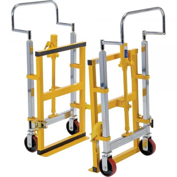 The Vestil Furniture, Crate and Vending Machine Movers make the transport of furniture, crates and machinery easy. Simply slide the nose plate under the item to be moved, strap both dollies together and lift. These movers feature a manual hand pump hydraulic lift. Standard with swivel poly-on-steel casters and long straps. Priced and sold in pairs.