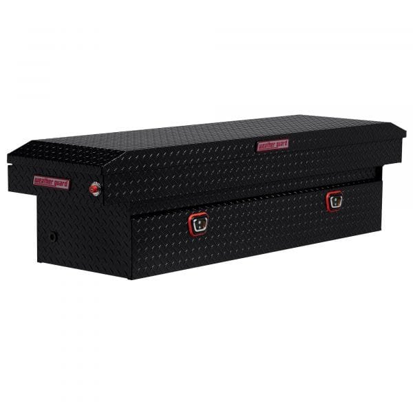 The Weather Guard 127-5-03 71in Standard Saddle Box (Aluminum Black) is a high-capacity, lightweight crossover tool box designed to sit across the truck bed rails, constructed from corrosion-resistant aluminum with a sleek black powder-coat finish for superior weather resistance and a modern aesthetic in long-bed trucks. This 71-inch box offers superior durability and security while minimizing vehicle weight, making it ideal for professionals who require generous storage capacity with reduced fuel impact. Contractors rely on the lightweight strength, ample capacity, and superior security of the Weather Guard 127-5-03 71in Standard Saddle Box for efficient, reliable tool protection and retrieval.